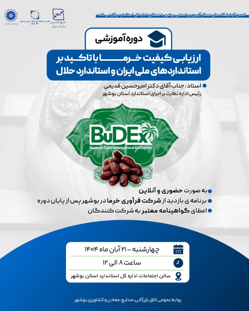 برگزاری دوره ارزیابی کیفیت خرما با تاکید بر استانداردهای ملی ایران و استاندارد حلال